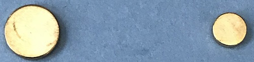Package: 2 round magnet pieces plated with 24-K gold; One 8 mm (5/16") diameter and one 4 mm (1/8") diameter.